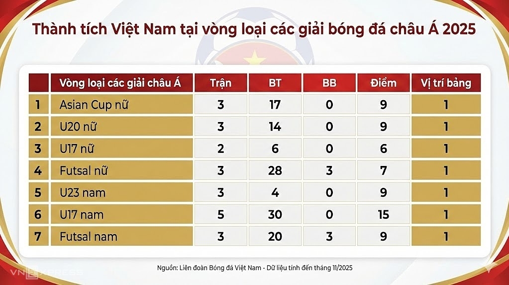 Việt Nam là đội duy nhất ở Đông Nam Á vượt qua toàn bộ vòng loại các giải châu Á năm 2025. Trong khi đó, kình địch Thái Lan thất bại ở vòng loại Asian Cup nữ.